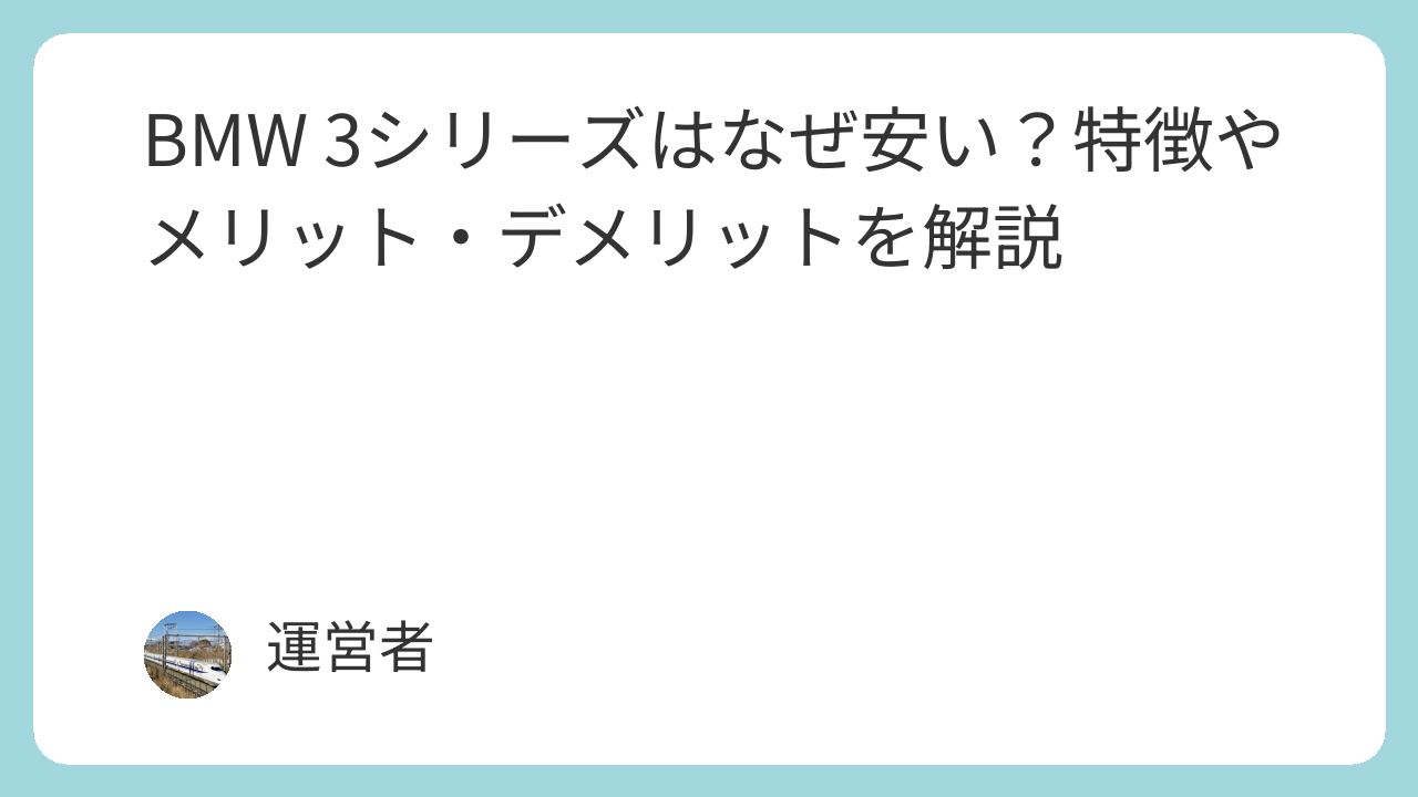 BMW 3シリーズが安い理由は、供給量の増加、限られた購入層、維持費への懸念、セダン人気の低下などが複合的に影響しています。