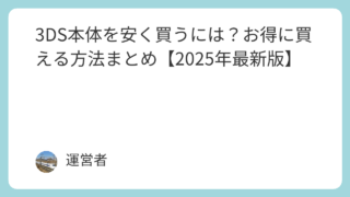 ゲーム 3DS本体を安く買うには?お得に買える方法まとめ【2025年最新版】 3DS本体を安く購入する方法を徹底解説。メルカリ、ヤフオク、ハードオフなど各販売場所の価格比較と注意点、中古品選びのポイントまで詳しくご紹介します。 2025.10.06 ゲーム